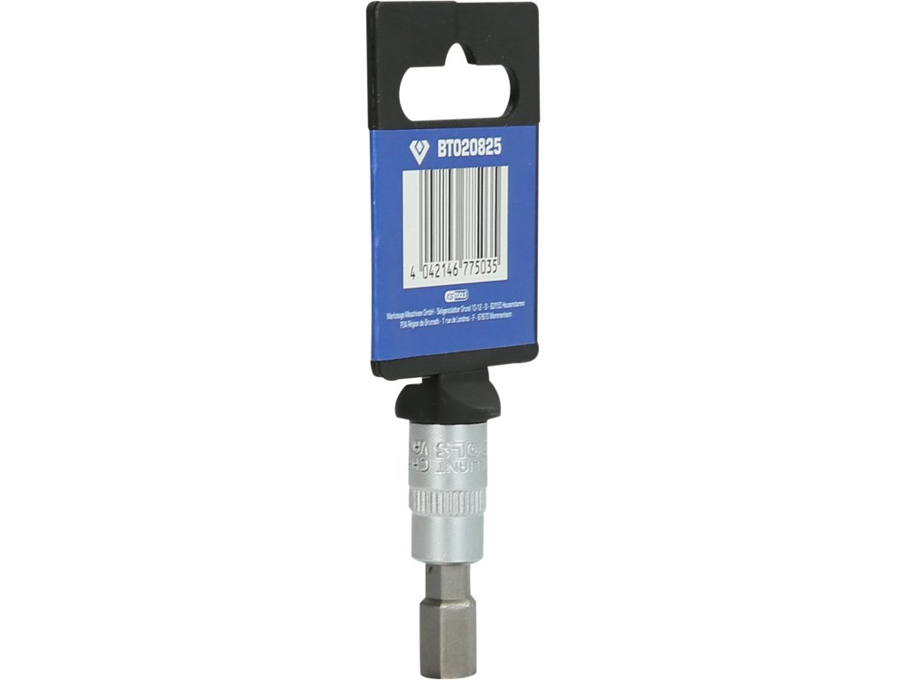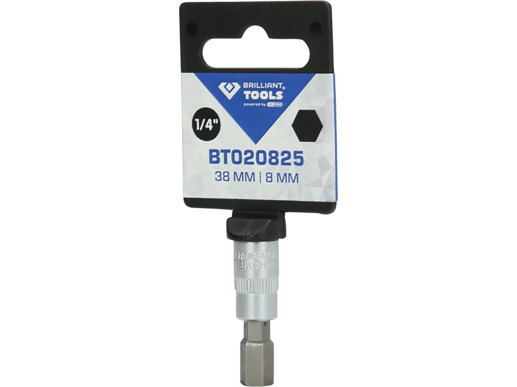 BRILLIANT TOOLS nástrčný bit imbusový BT020825 má 1/4" (6,3 mm) pohon s vnútorným štvorhranom, ktorý je vyrobený podľa normy DIN 3120. Veľkosť zalisovaného fosfátovaného bitu je 8. Celková dĺžka nástrčného bitu je 38 mm, dĺžka čepele je 17 mm. Povrch je na strane pohonu a na strane bitu matne pochromovaný, tento je oddelený pozdĺžnym ryhovaním.