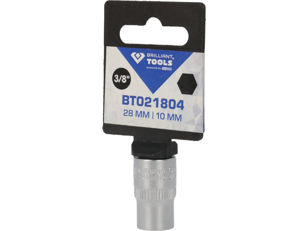 Šesťhranný nástrčný orech BRILLIANT TOOLS BT021804 je vyrobený podľa normy DIN 3124. Krátky metrický nadstavec má 3/8" (10 mm) pohon s vnútorným štvorhranom, ktorý bol vyrobený podľa normy DIN 3120. Veľkosť šesťhranu je 10 mm. Celková dĺžka nástrčného orecha je 28 mm. Povrch je na strane pohonu a na strane imbusu matne pochromovaný, tento je oddelený pozdĺžnym ryhovaním.