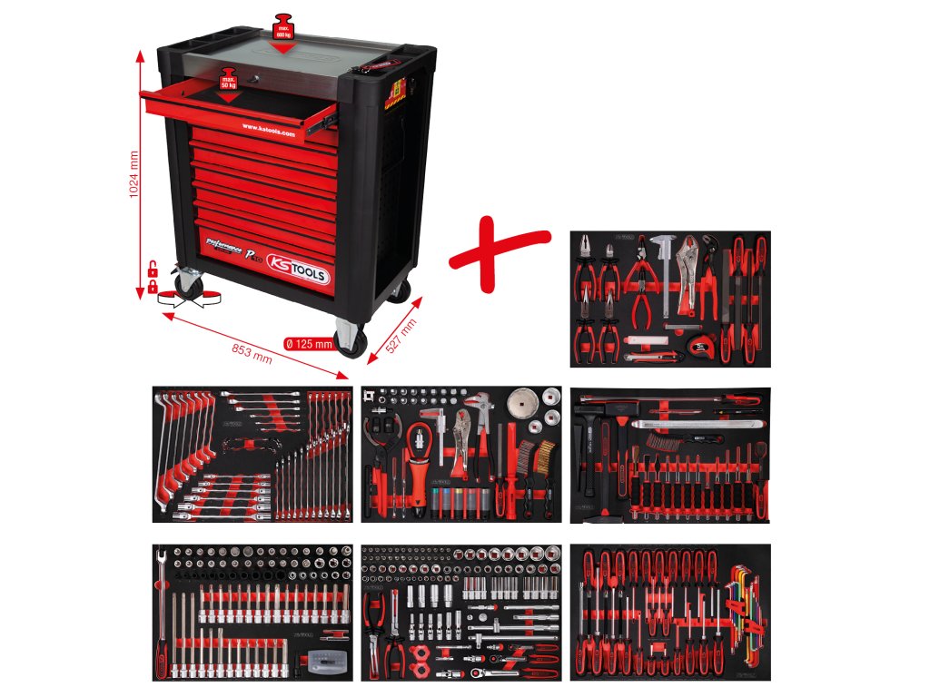 KS Tools Performanceplus súprava dielenského vozíka P10 so 397 náradiami pre 7 zásuviek