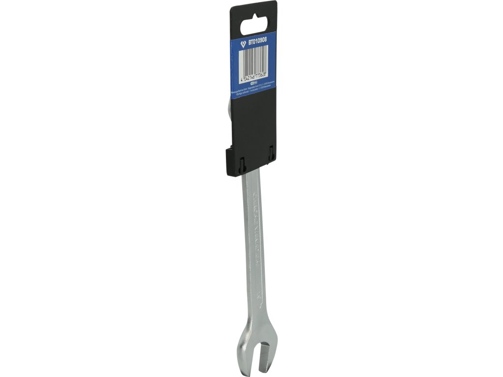 Metrický dvojitý otvorený kľúč BRILLIANT TOOLS BT010908 je vyrobený z chróm-vanádiovej ocele, ktorá bola zápustková kovaná a následne kalená. Povrch je na lepšiu ochranu proti hrdzaveniu matne pochromovaný a vyrobený podľa normy DIN 895, vďaka čomu mimoriadne dobre leží v ruke. Metrický dvojitý otvorený kľúč má obojstranný 15° zahnutý otvor. Metrický dvojitý otvorený kľúč je vyrobený z chróm-vanádiovej ocele, ktorá bola zápustková kovaná a následne kalená. Celková dĺžka kľúča je 17,5 cm a výška hlavy je 6,8 mm.