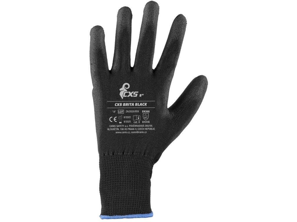 Rukavice CXS BRITA BLACK, máčané v polyuretáne