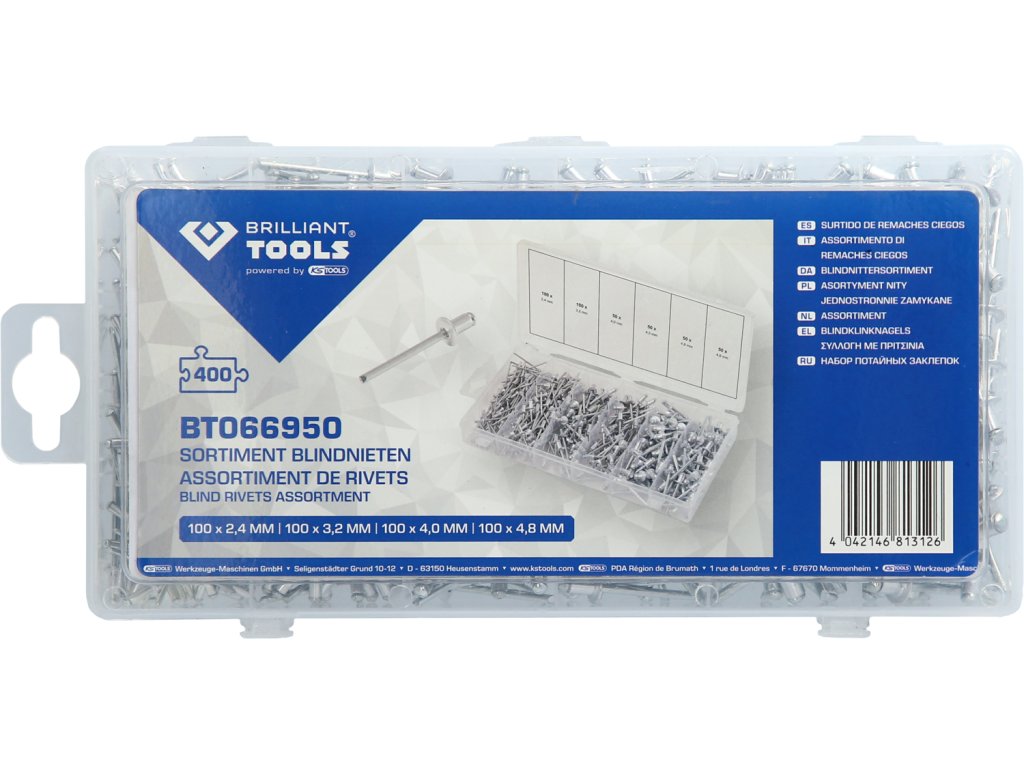Briliant tools BT066950 Sortiment slepých nitov, 400-dielny, 2,4 - 3,2 - 4 - 4,8 mm