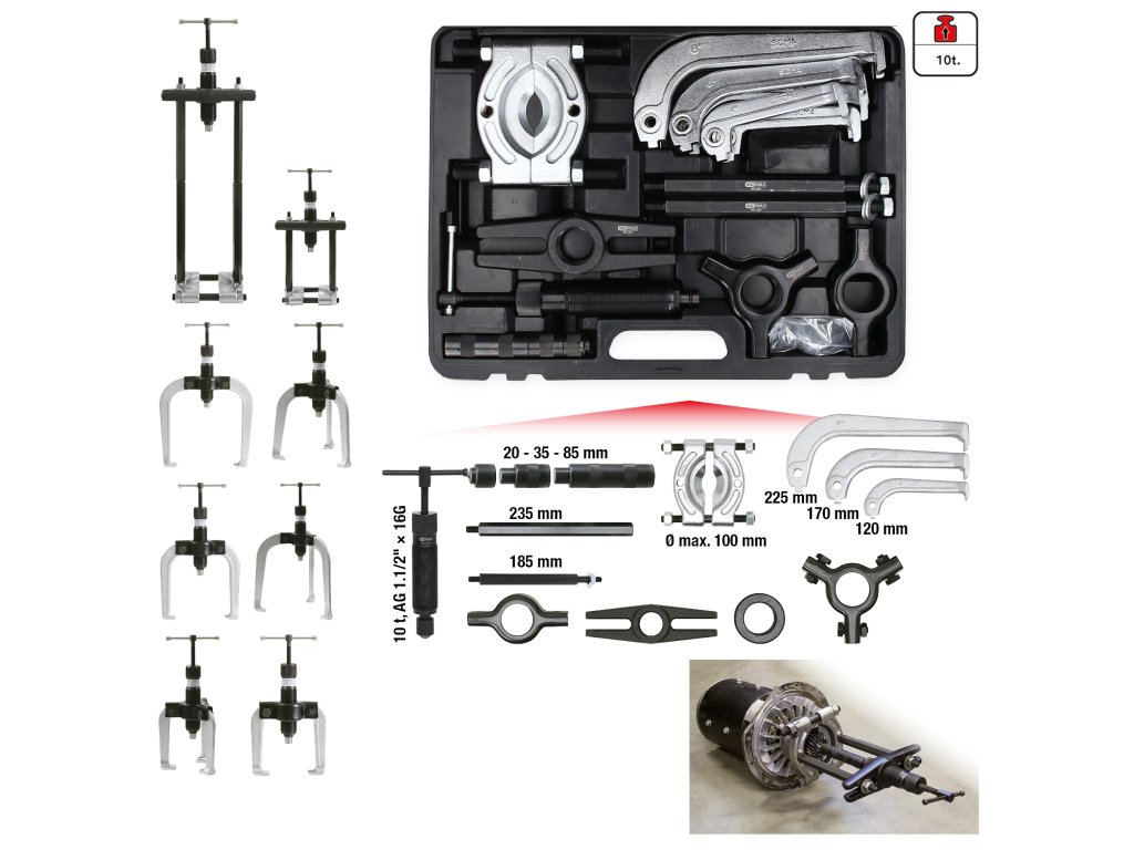KS Tools Súprava hydraulických sťahovákov 2-ramenná a 3-ramenná, 22-dielna