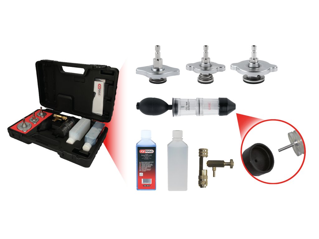 KS Tools Súprava na testovanie netesnosti hlavy valcov pomocou CO2, 8-dielna