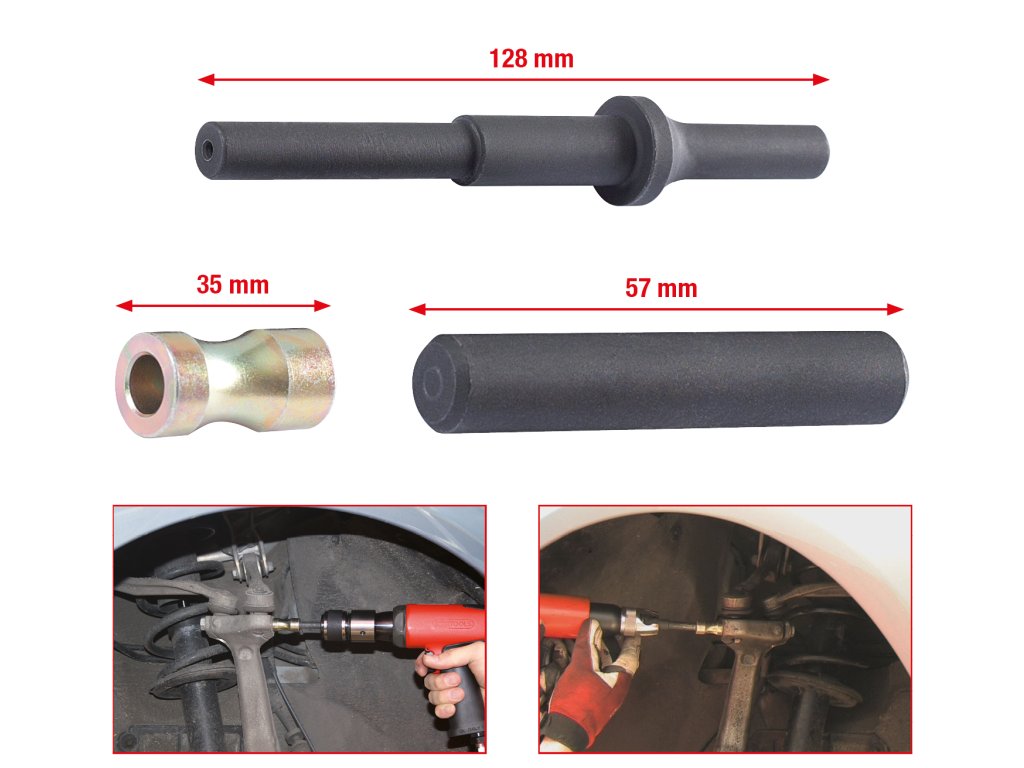 - na vytĺkanie zvieracej skrutky v prednej náprave zavesenia štyrmi ramenami špeciálne pri vozidlách VAG