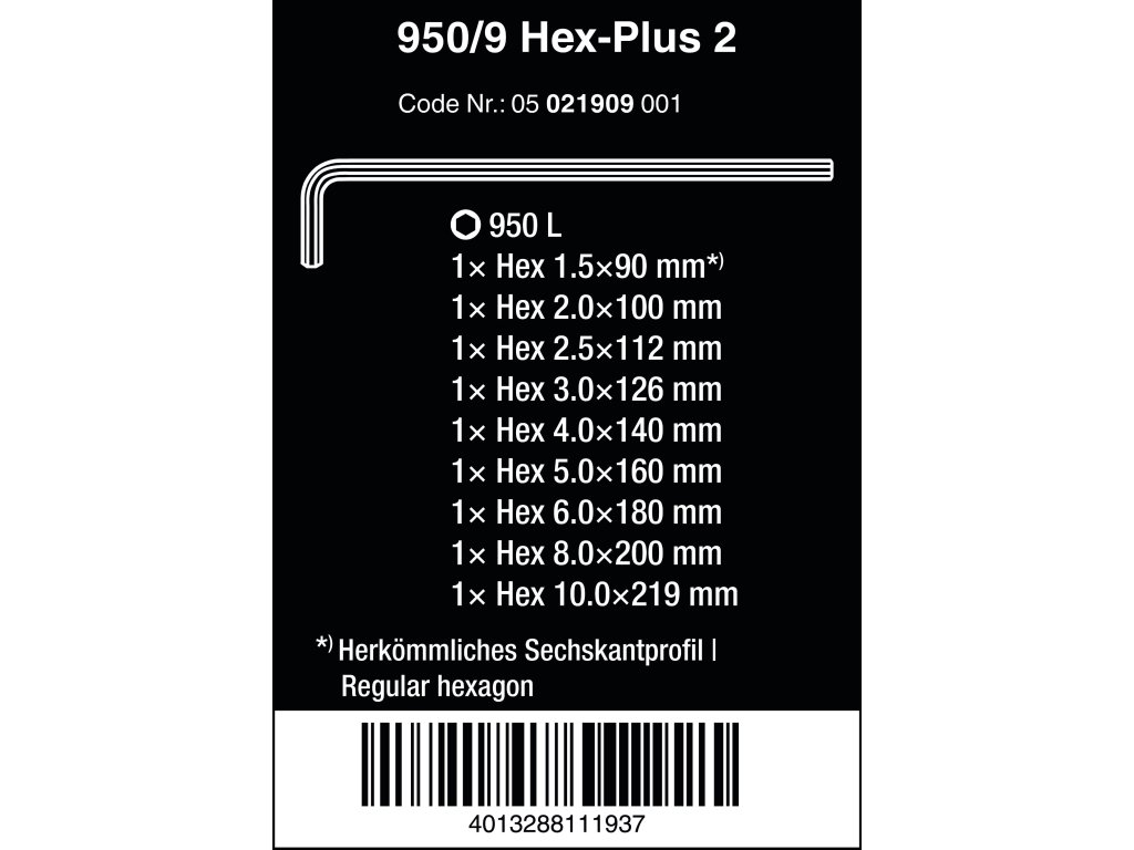 Wera 021909 Zástrčné kľúče inbus 950/9 Hex-Plus 2, chrómované (Sada 9 dielov)